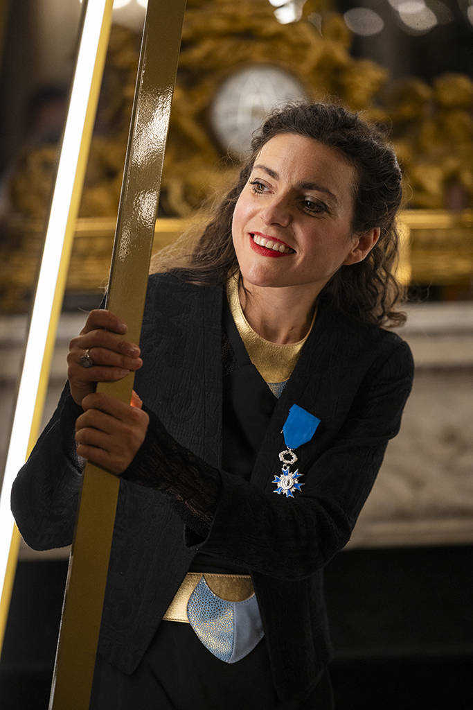 PYRAMIDION est une sculpture interactive de métal doré et de lumière mesurant 3,7 m de haut. Elle est née à Paris le 9 février 2018 dans l'architecture de Renzo Piano de la Fondation Jérôme Seydoux - Pathé. Puis, elle se pose le 11 février devant sa façade signée Auguste Rodin avant de s'installer dans le cœur bleu égyptien de la Mairie du 13 e arrondissement jusqu'au 14 mai 2018. Le 8 mars elle s'éclaire au rythme des battements de cœur de chaque "spectatrice-actrice" qui effleure son capteur cardiaque.